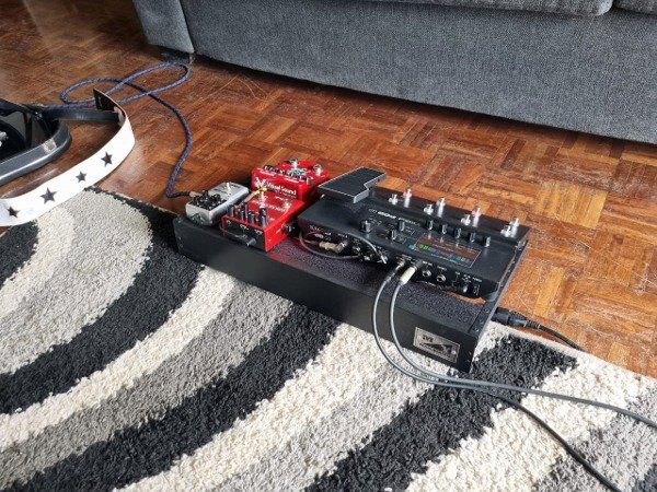 Tiene espacio interno de 8cm de alto por 14 de ancho y un largo total del largo de la pedalboard. Patas antideslizantes.